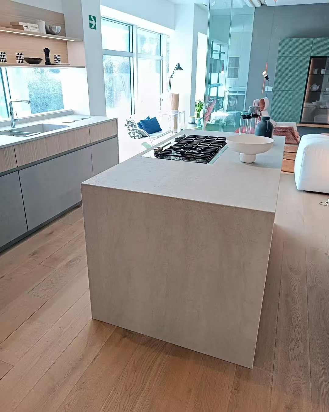 颜色:沙石系-白沙/珍贝岩应用区域:室内墙面、地面、餐桌岛台台面、浴室台面、外墙等